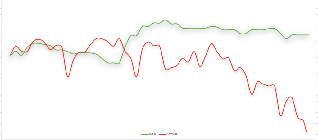Azor Investing YTD performance vs S&P 500. Accurate as of 20/03/2026.